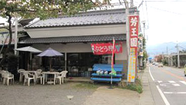 皆様のご来園をお待ちする芳王遊覧園は、東京ー山梨をつなぐ中央高速道路勝沼インターより5分、旧国道20号線にそって展開する本場勝沼ぶどう郷の中心にあります。